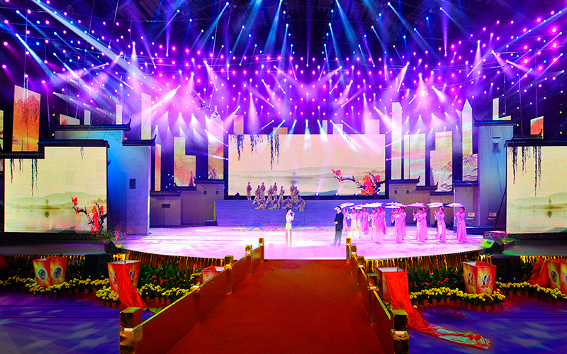 舞台灯光设计做得好坏,与照明设备的合理使用、照明角度和构图密不可分。舞台灯光工程师根据现场环境、节目安排及音乐节奏来处理灯光的方向亮度和图案,以达到理想的艺术效果,增加艺术吸引力,提高节目演出效果。活动庆典舞台灯光搭建需要注意以下事项: